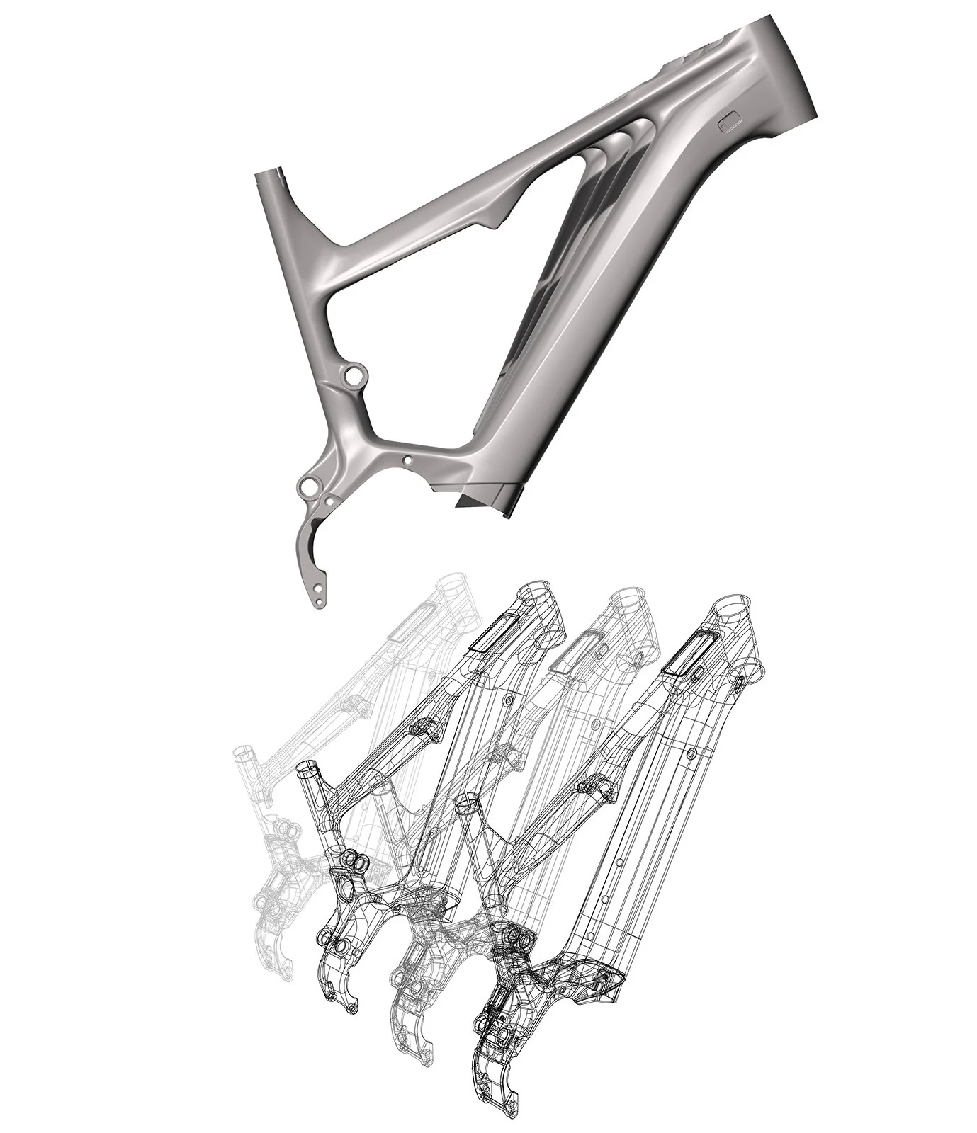Avec sa construction hybride aluminium et carbone, les coûts de production du cadre ont été optimisés au maximum. Nous avons développé le cadre complet en utilisant 2 méthodes de modélisations 3D, et en veillant à la bonne cohérence du design entre les 4 tailles de cadres.