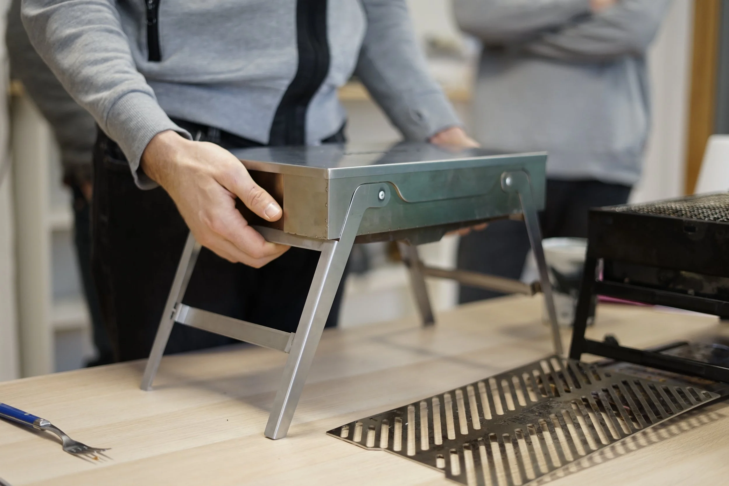 Pliage/dépliage du produit, tests de cuisson, allumage du charbon, … Diverses manipulations à faire à chaque itération de prototype pour se rendre compte de ce qui fonctionne ou reste à améliorer.